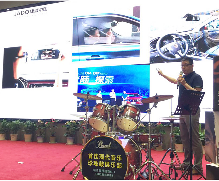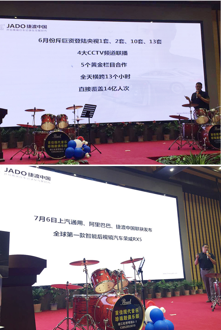 晚宴上,由揚州天泓汽車貿易有限公司總經理施德春先生上臺為大家介紹JADO捷渡VSeries遠界系列產品。