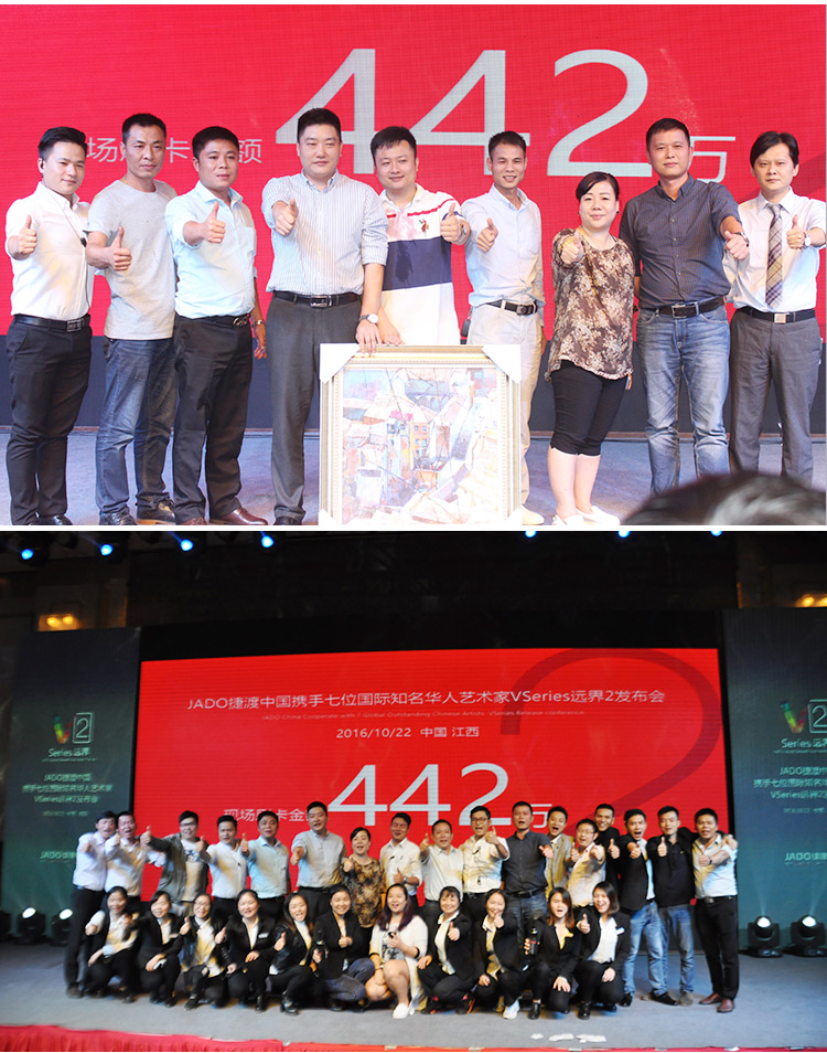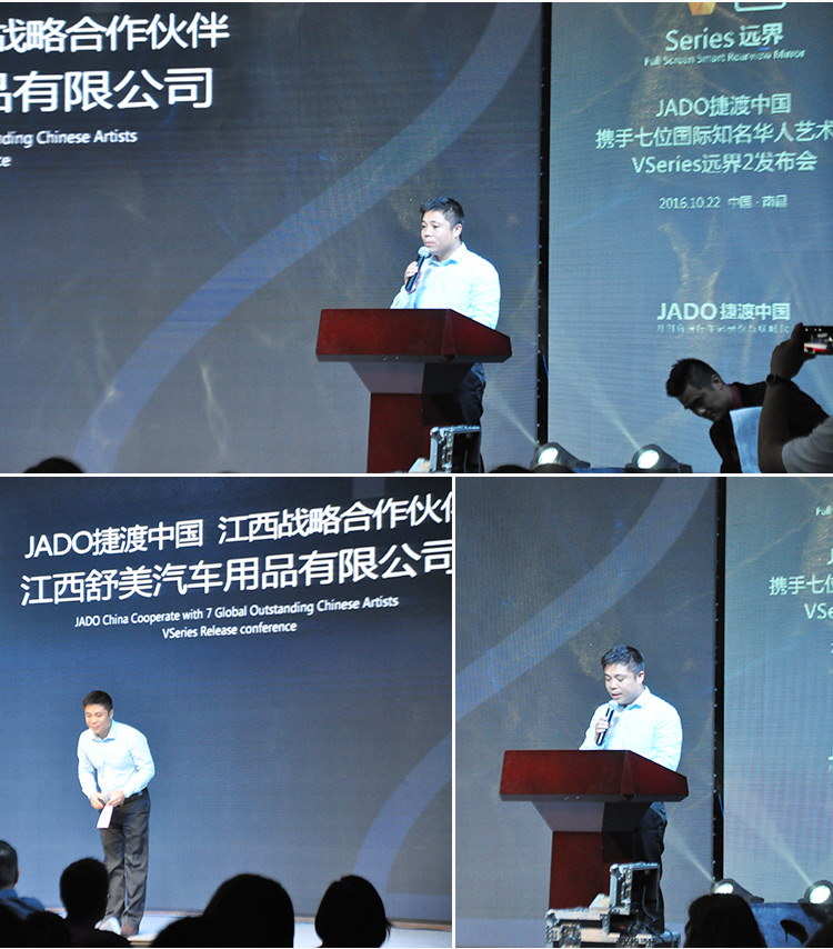 2016年10月22日,以 “再見,過去;你好,遠界 Bye yesterday, Hello VSeries” 為主題的“JADO捷渡中國攜手七位國際知名華人藝術家VSeries遠界2(中國• 江西)發布會”在南昌凱美開元名都大酒店完美落幕。本次活動由JADO捷渡中國江西省戰略合作伙伴江西舒美汽車用品實業有限公司主辦。