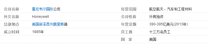 以上內(nèi)容來自于百度百科,欲了解更多關(guān)于霍尼韋爾,可瀏覽其官方網(wǎng)頁(yè)。http://www.honeywell.com.cn/