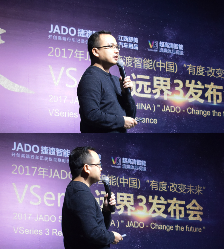 JADO捷渡智能(中國)產品總監吳樂明先生上臺致辭,重點為大家闡述了 VSeries遠界系列產品的設計理念。面對行業的白熱化競爭,如何從產品端去精準把握市場,進而引領后視鏡未來的廣闊市場。前裝與后裝并存、專業與智能的完美融合,VSeries遠界3給了大家一個最佳的選擇。