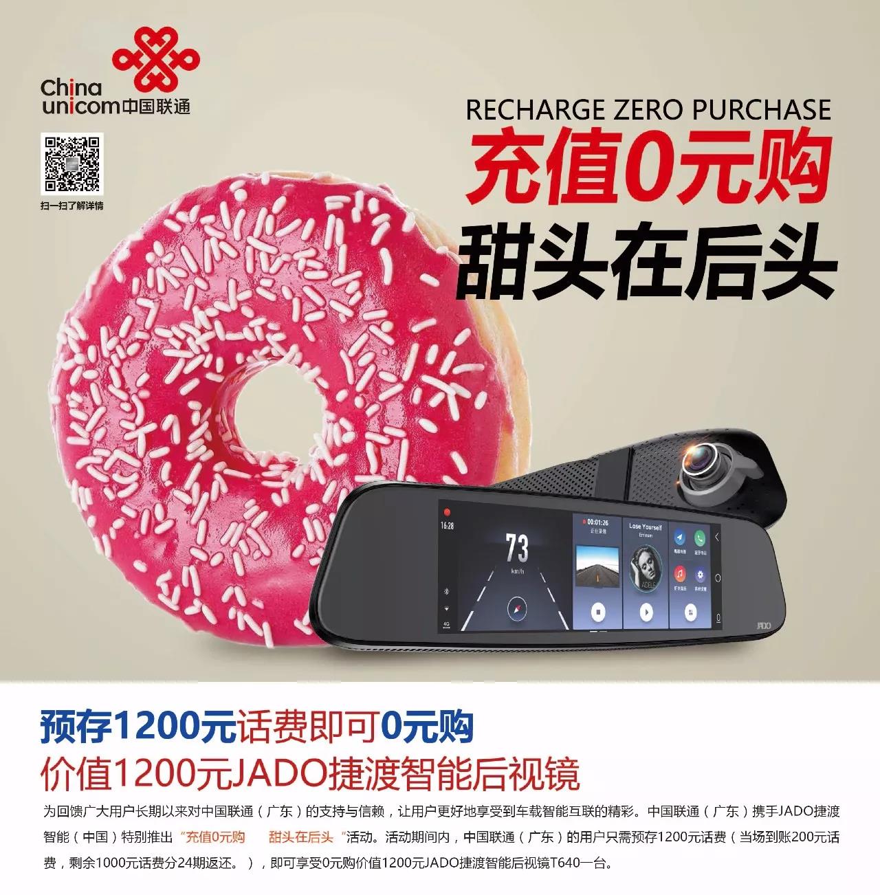“充值0元購,甜頭在后頭”活動是中國聯通(廣東)攜手JADO捷渡智能(中國)舉辦的感恩回饋活動,希望把更多的智能行車體驗帶給廣大車主,同時保障車主出行安全。未來,JADO捷渡智能(中國)將會繼續尋找優勢資源,為廣大車主帶去更多的福利活動,一起感受智能。