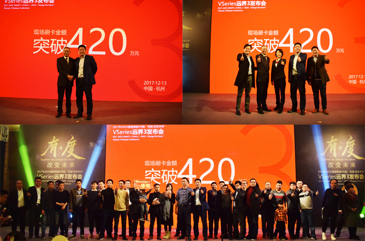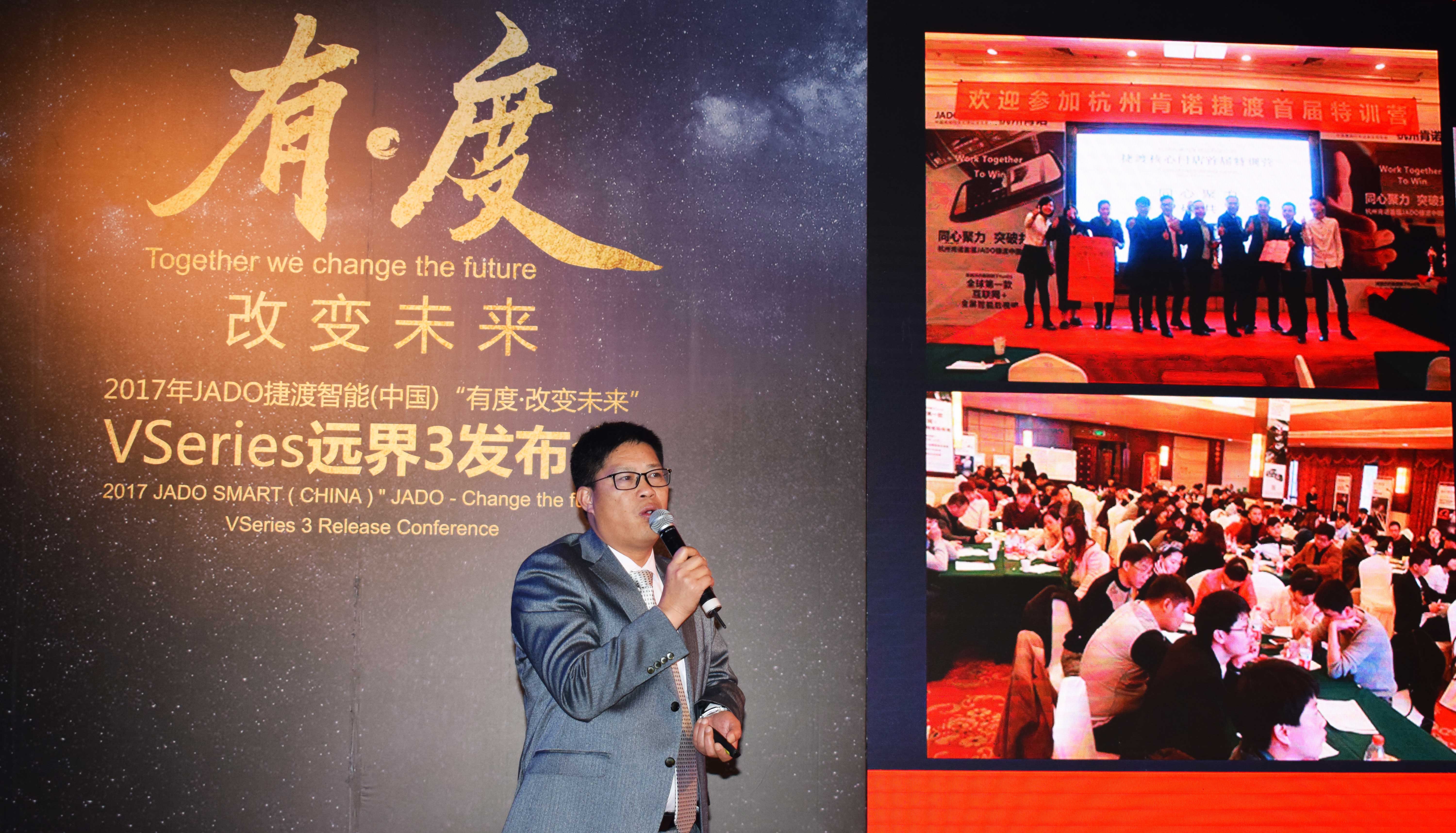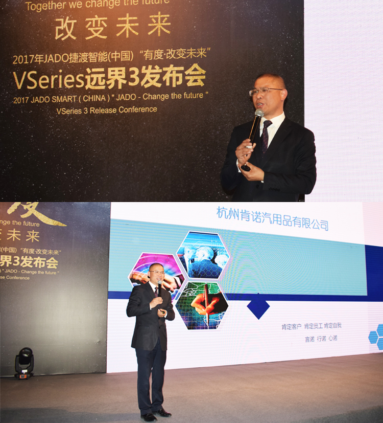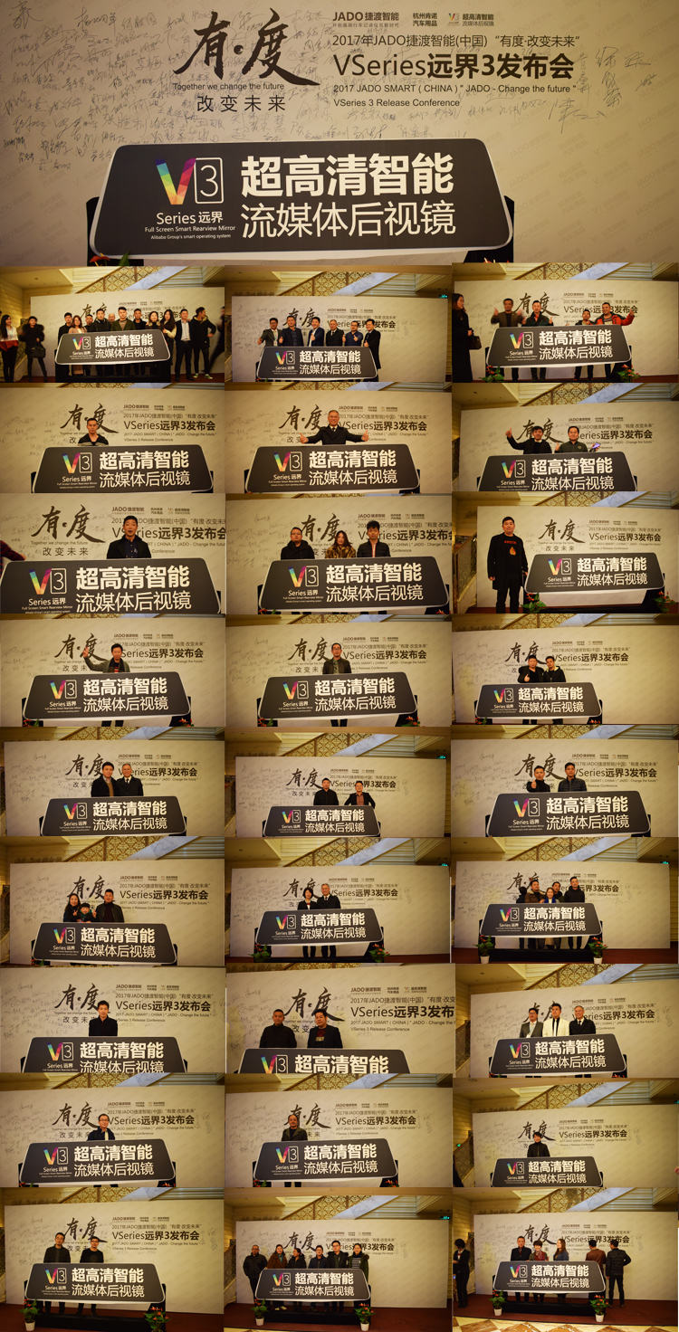 2017年12月13日,由JADO捷渡智能(中國)浙江省區(qū)戰(zhàn)略合作伙伴杭州肯諾汽車用品有限公司主辦,以“有·度——改變未來”為主題的“JADO捷渡智能(中國)VSeries遠(yuǎn)界3超高清智能流媒體后視鏡發(fā)布會(huì)”在杭州海外海國際酒店隆重召開。