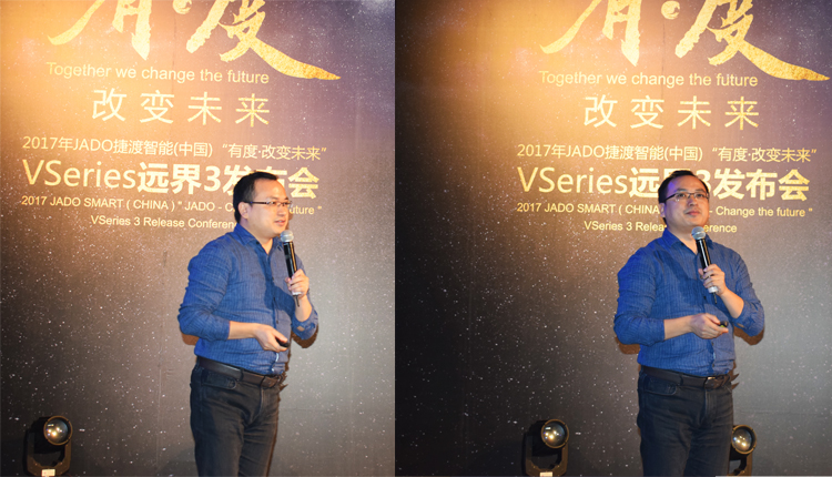 會(huì)上,JADO捷渡智能(中國)產(chǎn)品總監(jiān)吳樂明先生上臺(tái)致辭,為大家詮釋了 VSeries遠(yuǎn)界系列產(chǎn)品的設(shè)計(jì)理念。