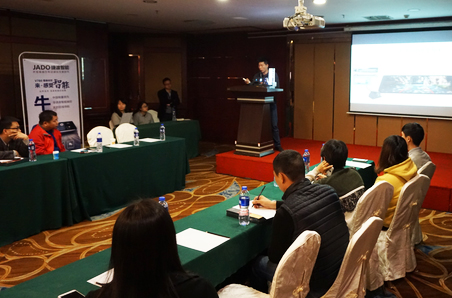 在熱烈的掌聲中,首先由永森汽車飾品有限公司總經(jīng)理杜應(yīng)森先生致辭。回顧2017的成長(zhǎng),在整個(gè)行業(yè)行情陷入低迷和迷茫的時(shí)候,敏銳地察覺到JADO捷渡智能(中國(guó))產(chǎn)品創(chuàng)新所帶來的市場(chǎng)空間和企業(yè)發(fā)展的機(jī)會(huì),看到新的經(jīng)營(yíng)曙光。對(duì)此,永森汽車飾品有限公司緊跟步伐,做出相應(yīng)政策調(diào)整,促進(jìn)企業(yè)往更加良性有序的方向發(fā)展。