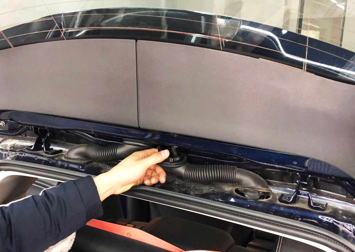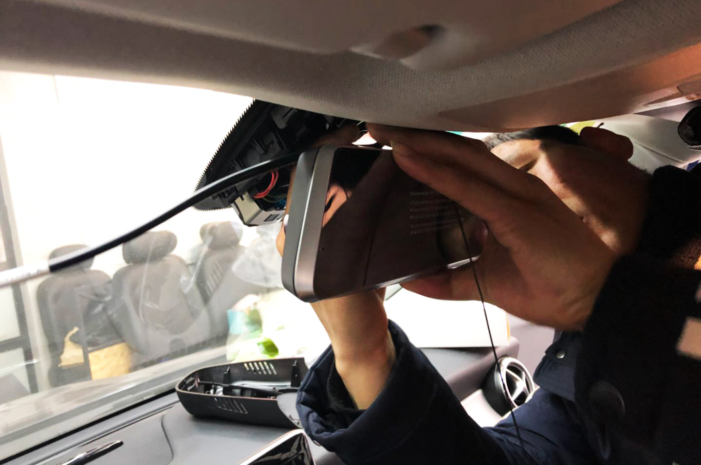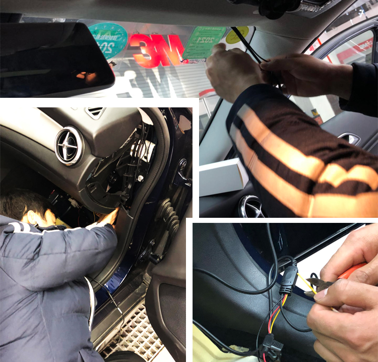 師傅開始預埋后視攝像頭線束