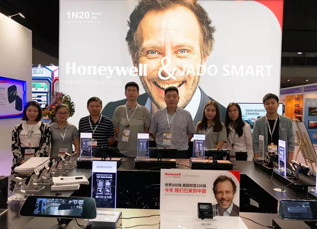 本次展會上,JADO捷渡智能(中國)還攜手霍尼韋爾推出首款H1行車記錄儀,小巧的機身,配以精細的設計工藝,色澤質感與手感渾然一體,一經亮相便在展會上吸睛無數。