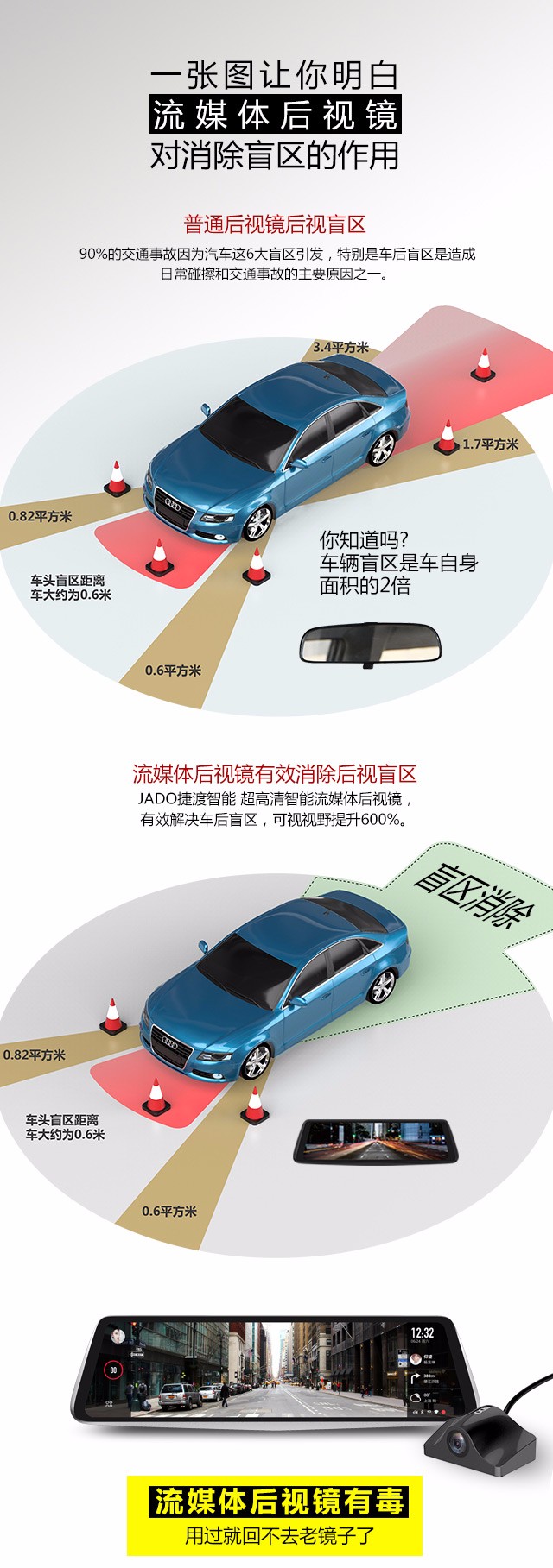 科技的進(jìn)步推動(dòng)了人工智能的發(fā)展,智慧出行的時(shí)代也悄然來臨。但無論在任何時(shí)代,“安全”都是出行時(shí)所要考慮的第一要素。對(duì)于駕駛員朋友而言,安全更是第一責(zé)任和要?jiǎng)?wù)。全球每年發(fā)生的交通事故,90%與駕駛員的視覺盲區(qū)有關(guān)。為了讓汽車出行變得更加的安全,JADO捷渡智能(中國)2017年在行業(yè)內(nèi)率先推出了VSeries遠(yuǎn)界——超高清智能流媒體后視鏡,仿佛讓駕駛員多了一雙“眼睛”,縮小了汽車后方的視野盲區(qū),讓顯示視野提升600%,為車主的行車安全提供了更大的便捷、更安全的行車保障,注定未來必將成為趨勢(shì)。