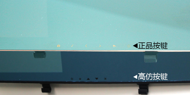 3、 正品捷渡 D610 中間下方功能按鍵為金色觸摸按鍵,而高仿為黑色,且觸摸不起作用,真正的按鍵隱藏在產(chǎn)品下方,操作十分不方便,屏幕上的按鍵只是一個假象。