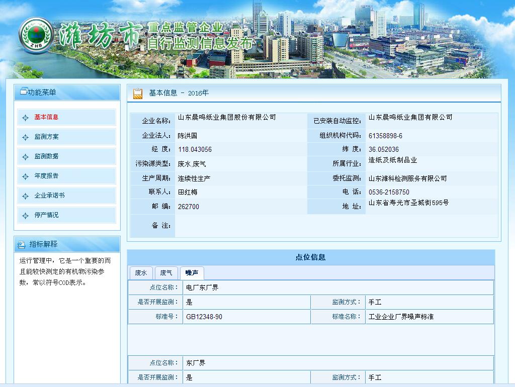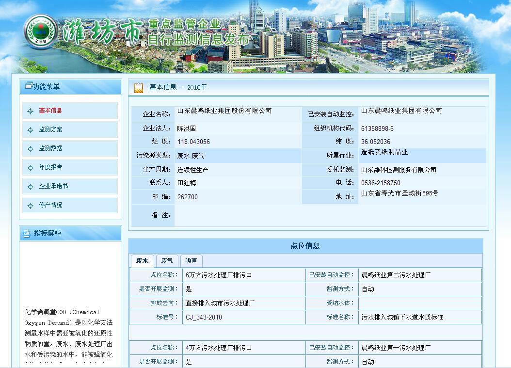山東晨鳴紙業集團廢水、廢氣自測公示161030